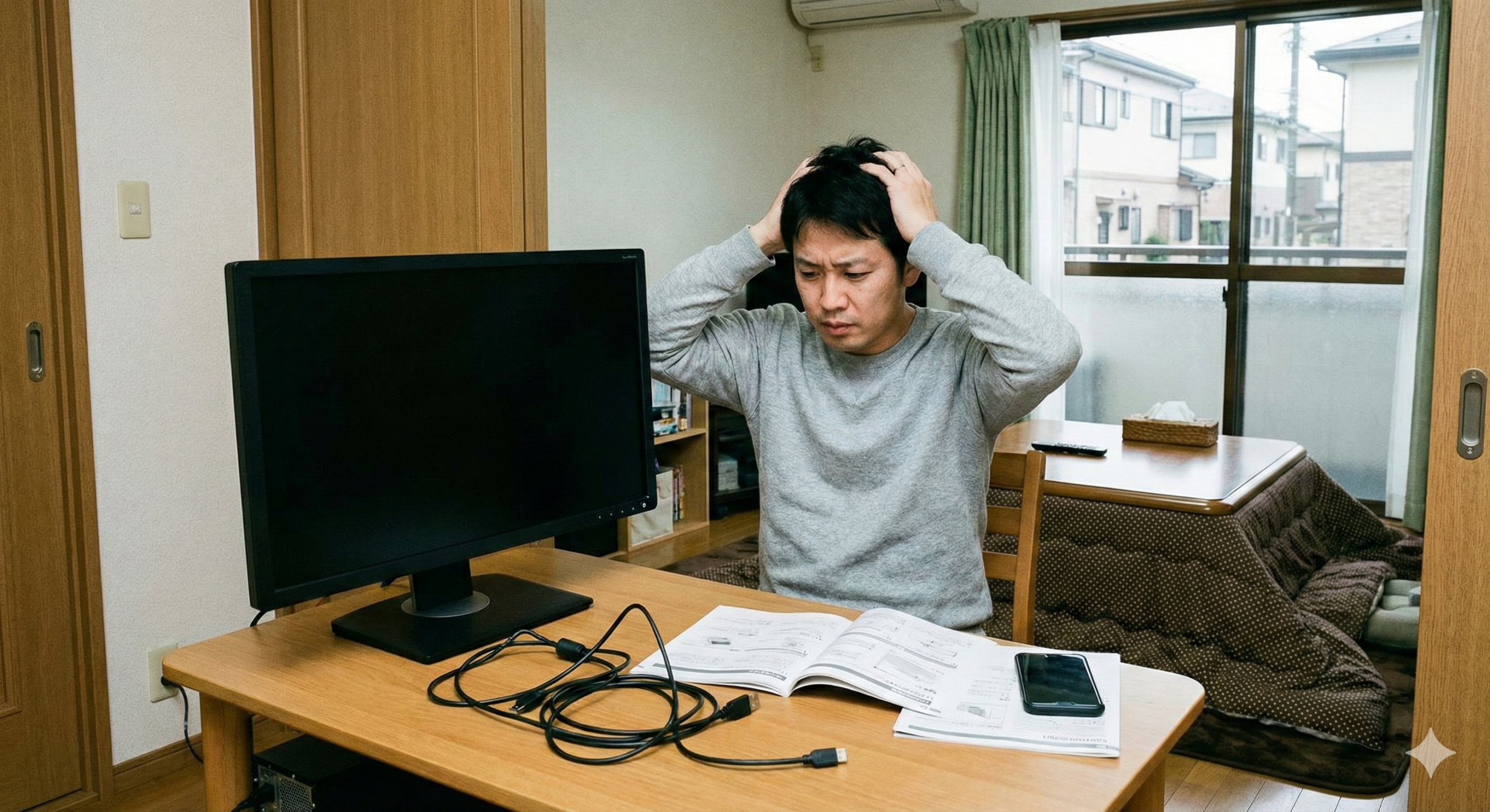 画面が真っ暗なとき、実は**「パソコンは動いているけれど、映し出すテレビ(画面)だけが壊れている」**ということがあります。