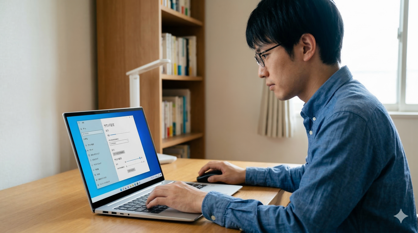 Windowsパソコンを使っている場合、ここが最も重要です。音がどこから出るかを指定し直しましょう。