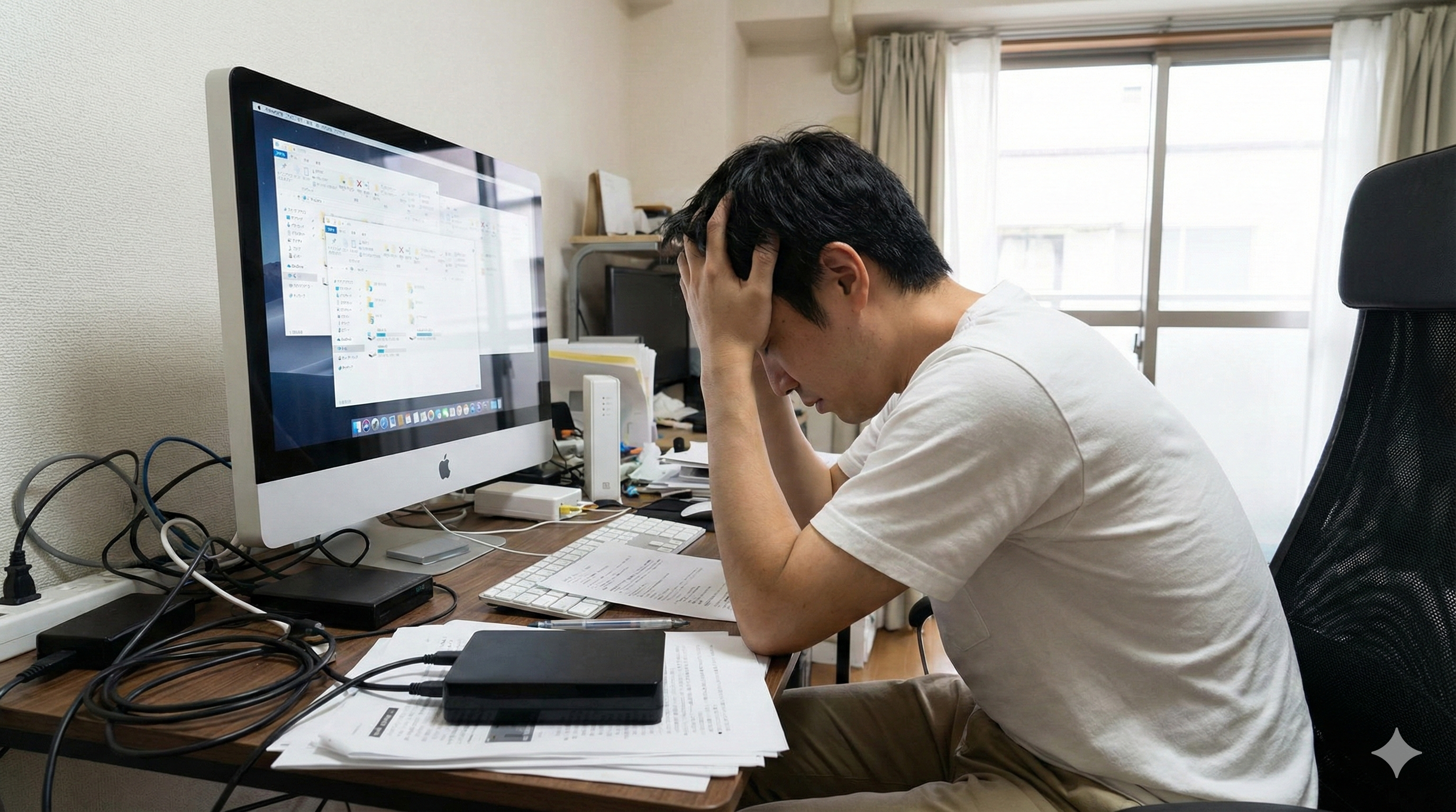 - 画面が固まる(フリーズ)(机の上が散らかりすぎて、作業するスペースがない)