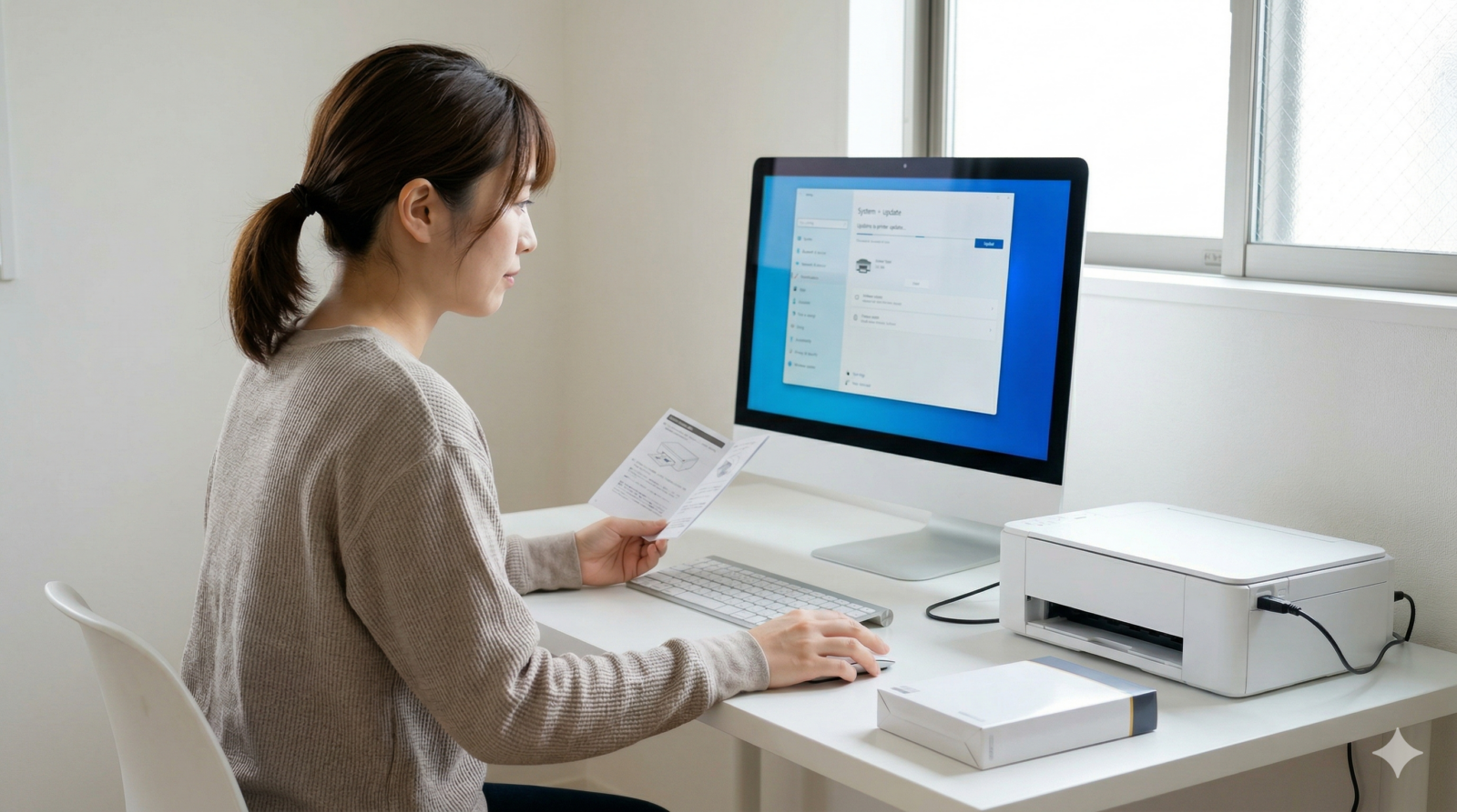 1. プリンターの本体に書いてある名前(例:Canon TS8330、Epson EP-882Aなど)をメモします。 2. インターネットで「(プリンターの名前) ドライバー」と検索します。 3. メーカーの公式ページから、自分のパソコン(Windows11など)に合った最新のソフトをダウンロードしてインストールします。 - これだけで、データの送り方が効率的になり、今まで1分待っていたのが5秒で始まるようになることも珍しくありません。