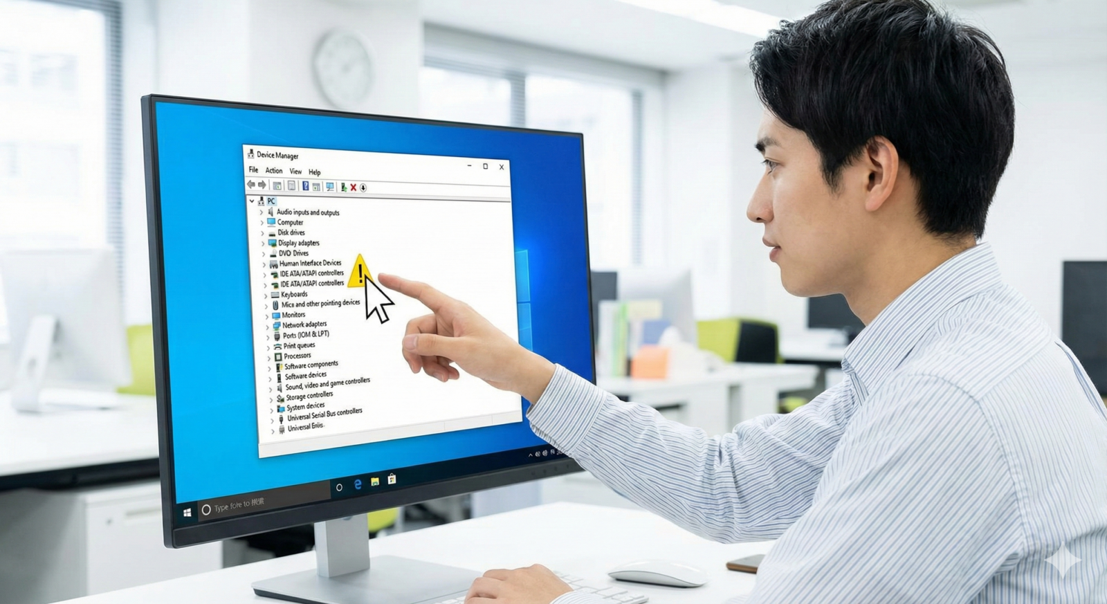Windowsでスキャナー名の横に黄色い三角やビックリマークがついていたら、「機械は見えているが、動かし方が分からない(ドライバー不全)」または「リソースの競合」が起きているサインです。