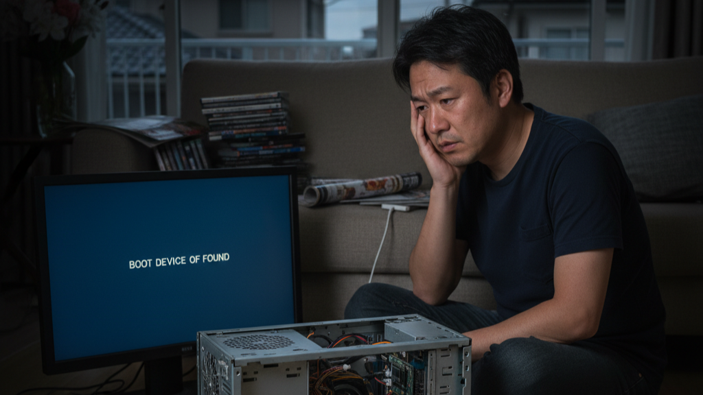 クローンが不完全な状態で換装すると、PCは以下のような症状を示します。これらの症状は、ブート情報が正しくコピーされていないことを強く示唆しています。